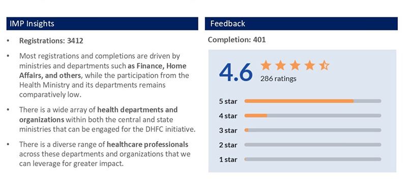 Koita Foundation's Digital Health Foundation Course (DHFC) launched on iGOT Karmayogi, the Government of India's learning platform. In just 3 months, over 70,000 government professionals enrolled, underscoring the growing interest in digital health. With an average rating of 4.6/5, the course proved highly impactful in building foundational digital health knowledge across India's public sector workforce.